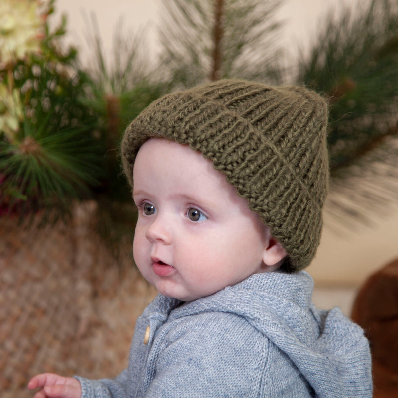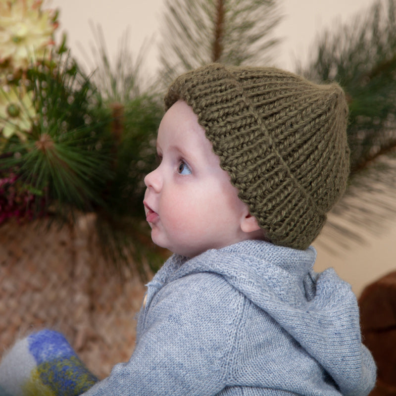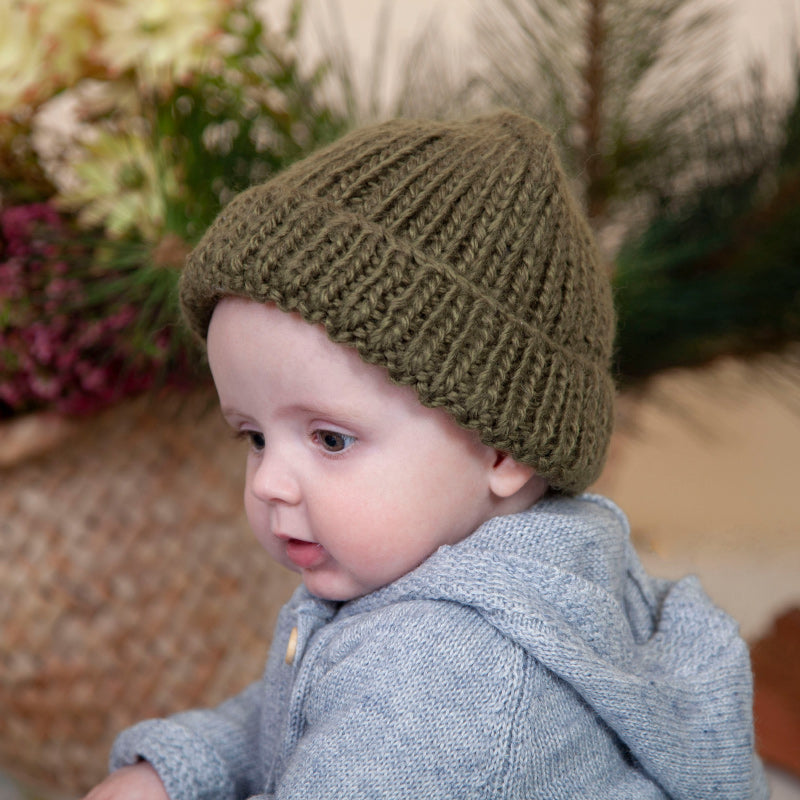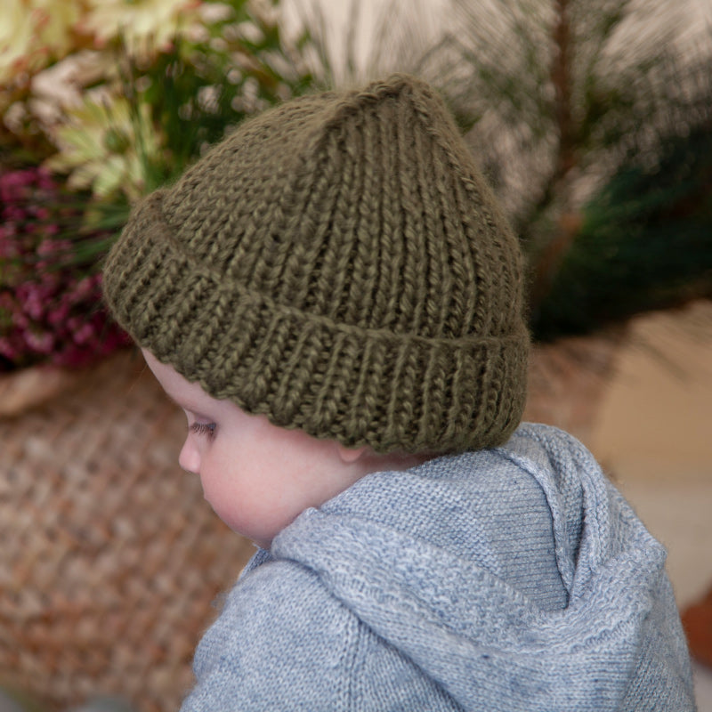 Hand-knitted beanie made with a fisherman's rib stitch that is super stretchy and extremely comfortable when worn.