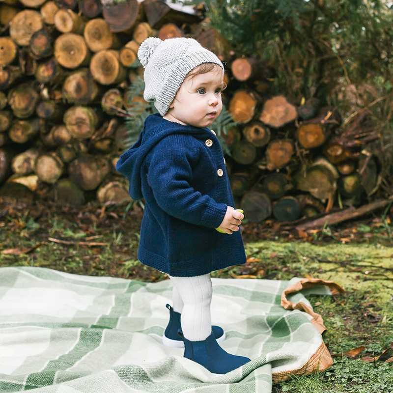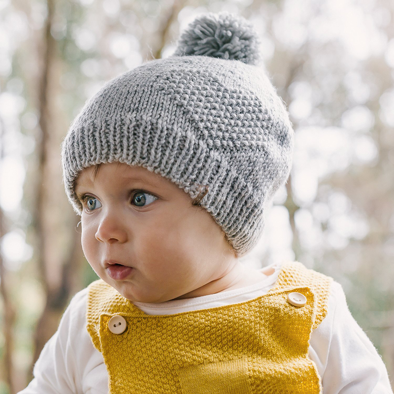 Hand knitted beanie and mitten set with embroidered heart design and pom pom on top. Comes packaged in an Acorn gift box. Made in 100% Merino Wool.