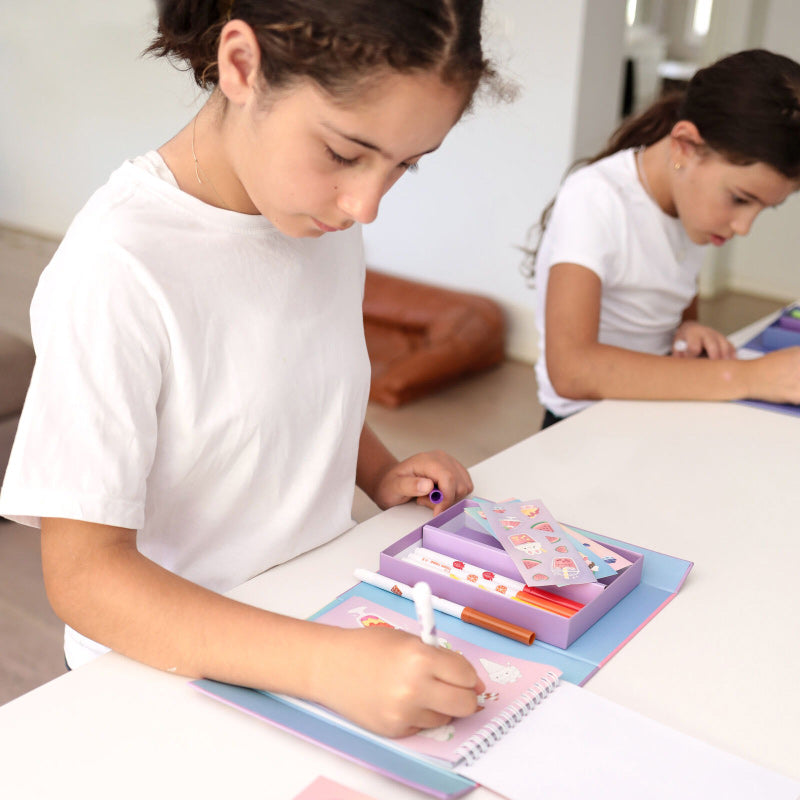 Stop: Sticker time! A great way for kids to customise their notebooks or diaries, or add some fun to crafts, this set comes positively stacked with over 200 stickers!! Full-colour, scented stickers, plus 16x sheets of ready-to-colour stickers – and 6x sweetly scented markers to colour in with.