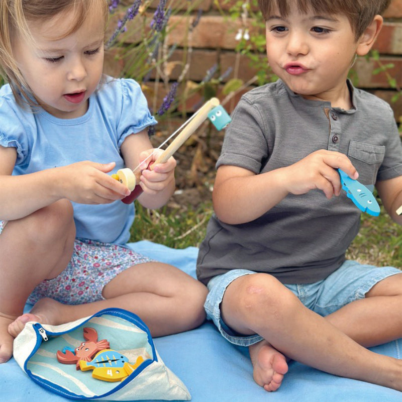Calling all little anglers – your fishing adventure awaits. Grab the magnetic rod, cast your line, and reel in 7 cool sea creatures. It's like your very own under-the-sea expedition! With each catch, you'll discover hidden numbers and master the art of counting. And when you're done, just tuck everything into the wave-themed, zippable 'pencil-case' bag. Sea-riously awesome, right?