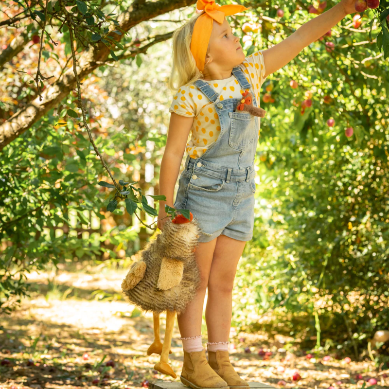 Rupert the Rooster is famed throughout the Nana Huchy farm & beyond for his superb good looks & charming swagger. He can sometimes act bashful about his reputation but he secretly adores the attention. If you spend some quality time with Rupert, you may notice him admiring his fine appearance in any & all reflective surfaces available to him. His uncle Roy cannot help but roll his eyes at the young Casanova & thinks silly Rupert is far too cocky for his own good! That being said, Rupert ultimately has a good heart. He is always trailed devotedly by the sweet-natured & rather clumsy Snowy the Goose.