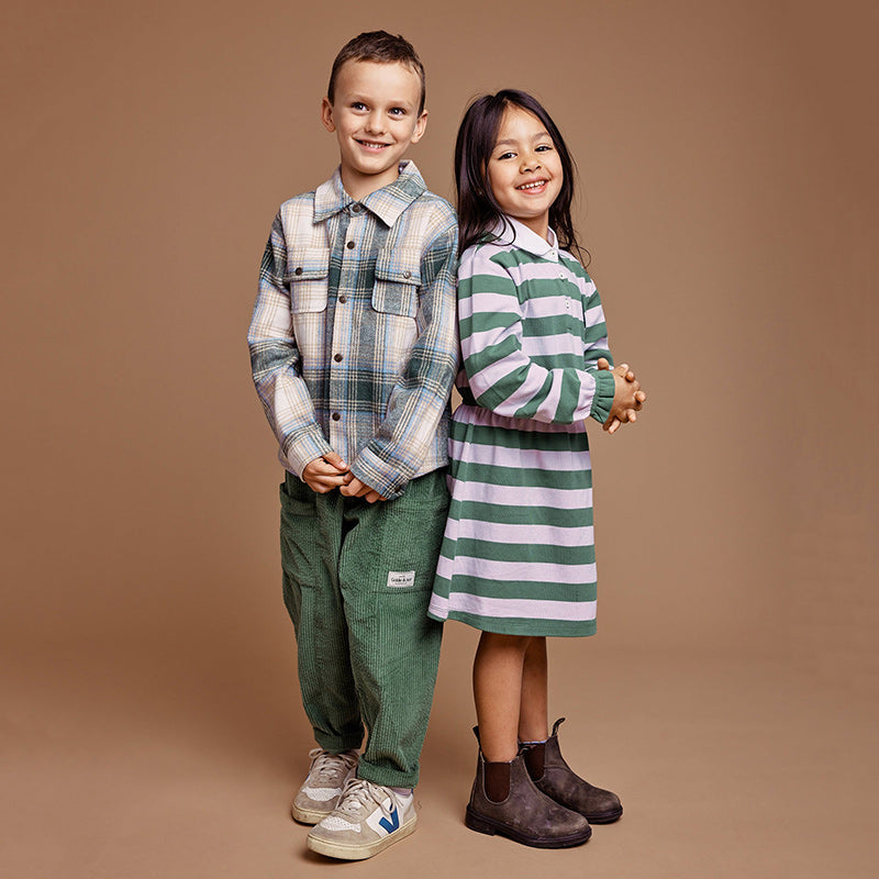 Let your little one roam in style and comfort with these 90s-inspired Kit Corduroy Pocket Pants, featuring a roomy wide leg cut and oversized wrap-around pockets for storing treasures. Featuring a functional drawstring cord.