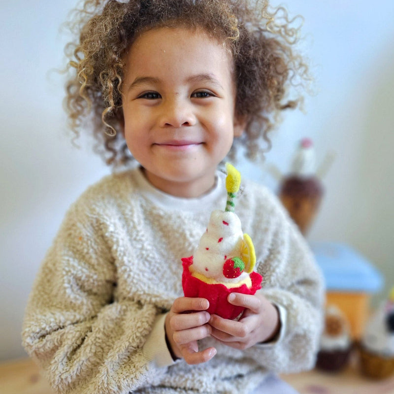 Let your little one enjoy the magic of play with our Giant Felt Strawberry Cupcake with Candle! Perfectly sized for small hands to hold, this large, whimsical cupcake is topped with a candle, making it a fun and imaginative addition to any pretend celebration.