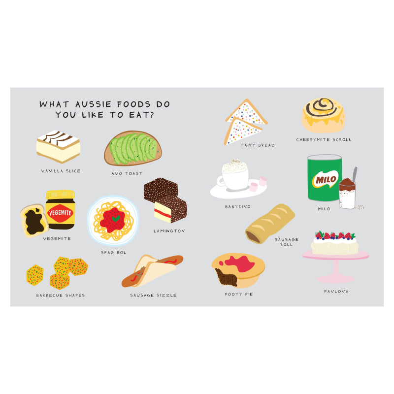 Kids will love flicking through the pages and identifying classic backyard scenes, Aussie food, animals, sports, landmarks and more!