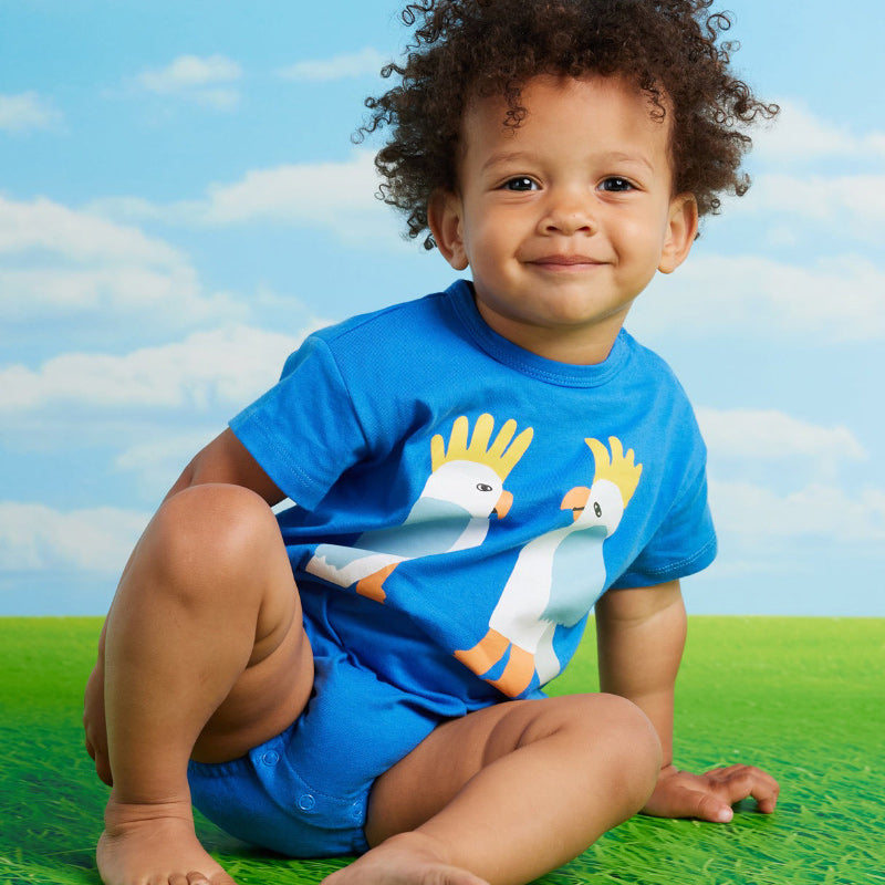 Prepare for some serious lounging this summer in our Baby Bodysuit. With its playful animal print art from our Blue Cockatoo collection.