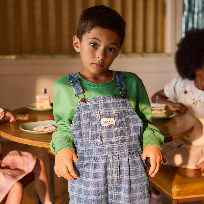 Goldie & Ace Austin Denim Check Overalls - 3-6M is backordered and will ship as soon as it is back in stock.