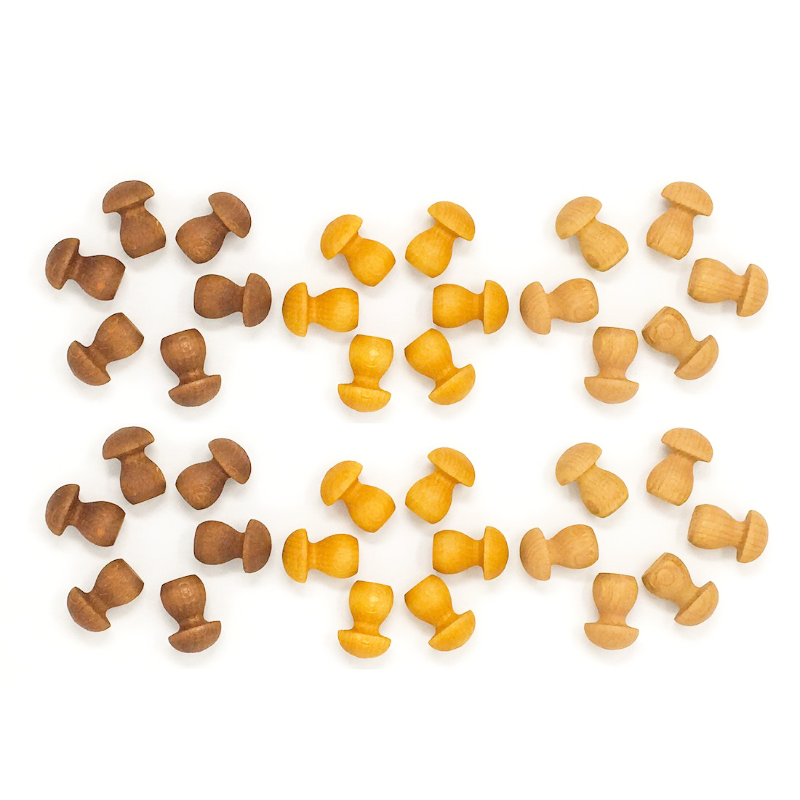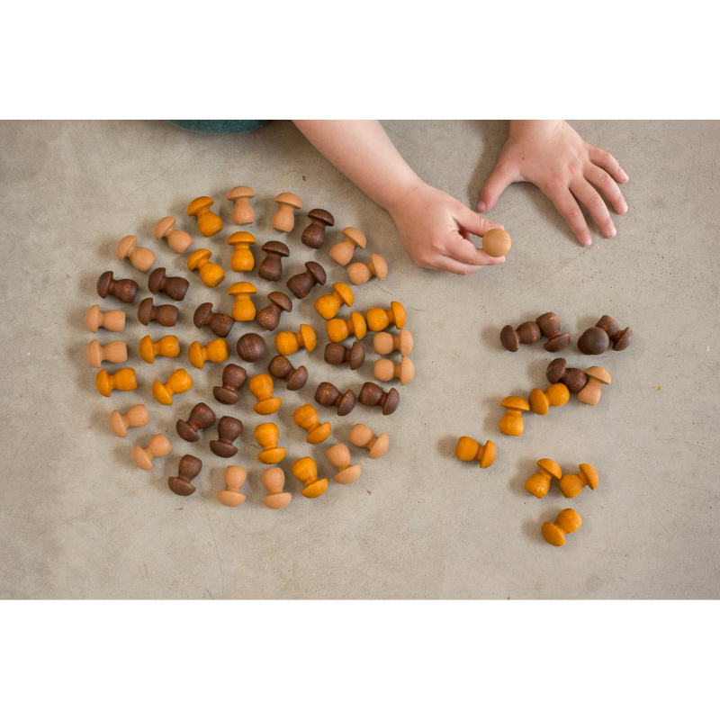 The Grapat Mandala set of 36 small brown mushrooms is a superbly versatile, open-ended, loose parts wooden toy and the possibilities of use are so exciting! Designed in order to create a unique sensory experience as you design your own mandala, this also encourages the development of fine motor skills and becomes a beautifully interactive way to teach children about symmetry.