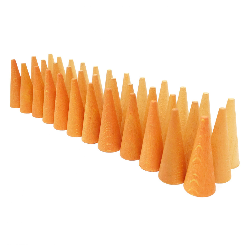 The Grapat Mandala set of 36 orange Cones is a superbly versatile, open-ended, loose parts wooden toy and the possibilities of use are so exciting! Designed in order to create a unique sensory experience as you design your own mandala, this also encourages the development of fine motor skills and becomes a beautifully interactive way to teach children about symmetry.