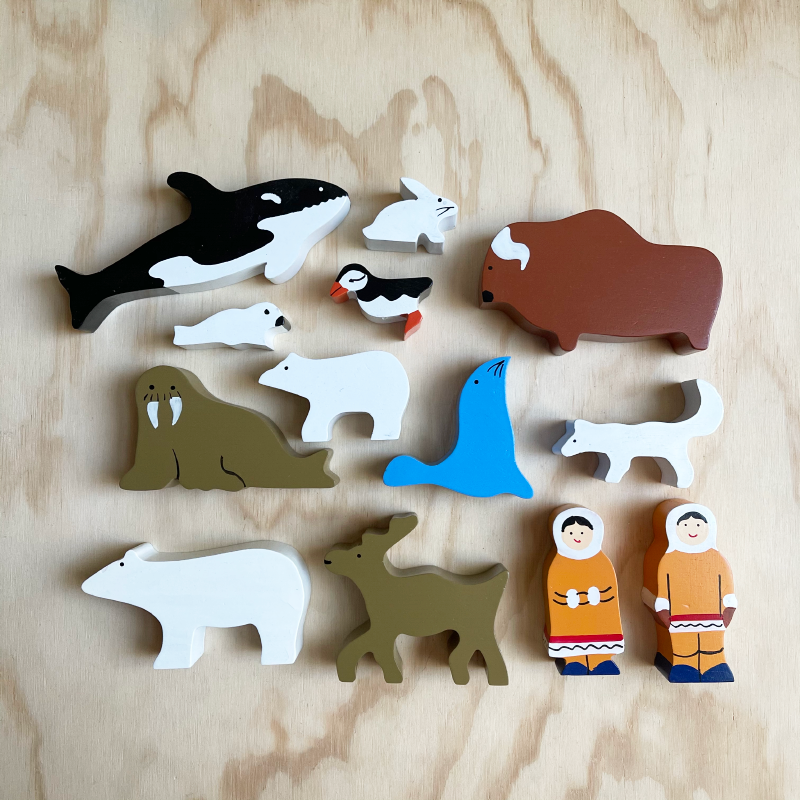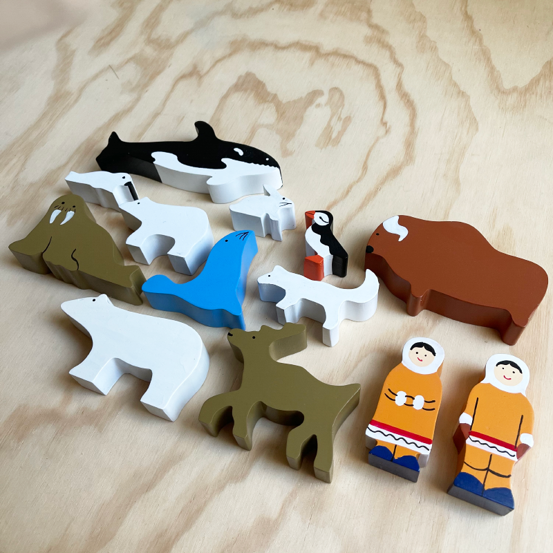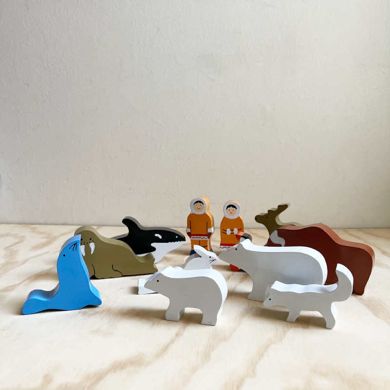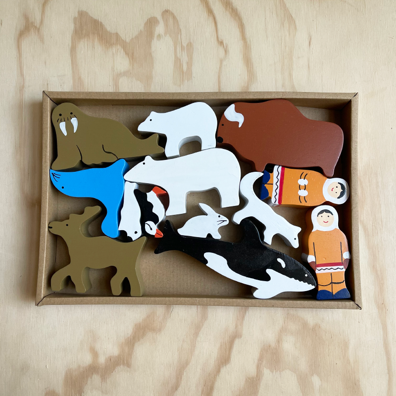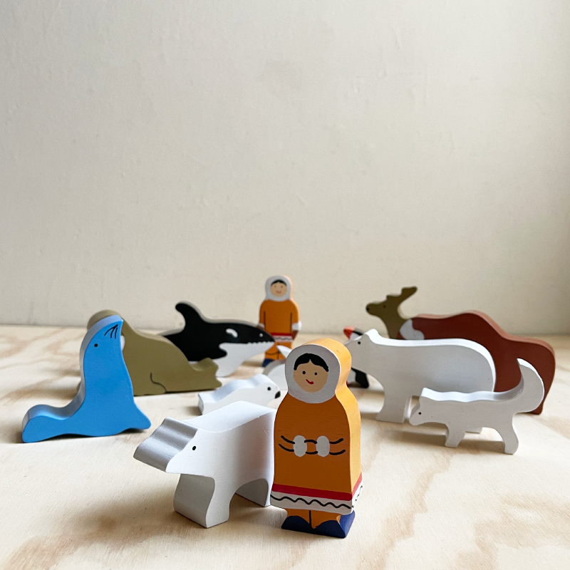 Wooden People and Animals - depicting Eskimos and Animals of the Arctic regions.