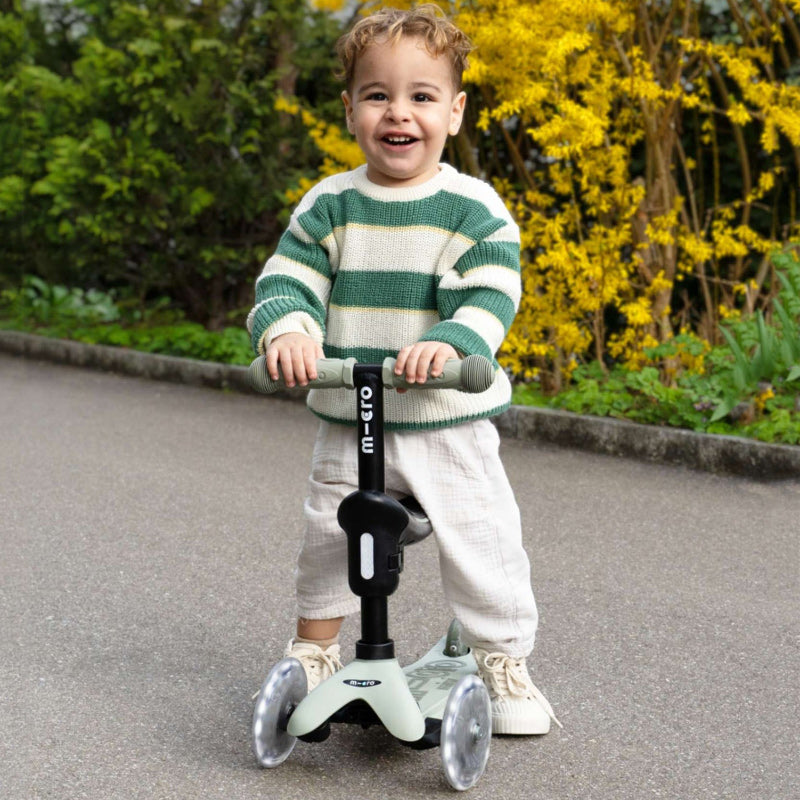 The Mini Micro Rock & Go is one product with six stages and the world's first rocking scooter, designed to grow with your child without the hassle of tools. The seat clips on and off in seconds, making it easy to switch between modes, and it’s perfect for sharing; one can rock while the other scoots, ideal for siblings close in age.