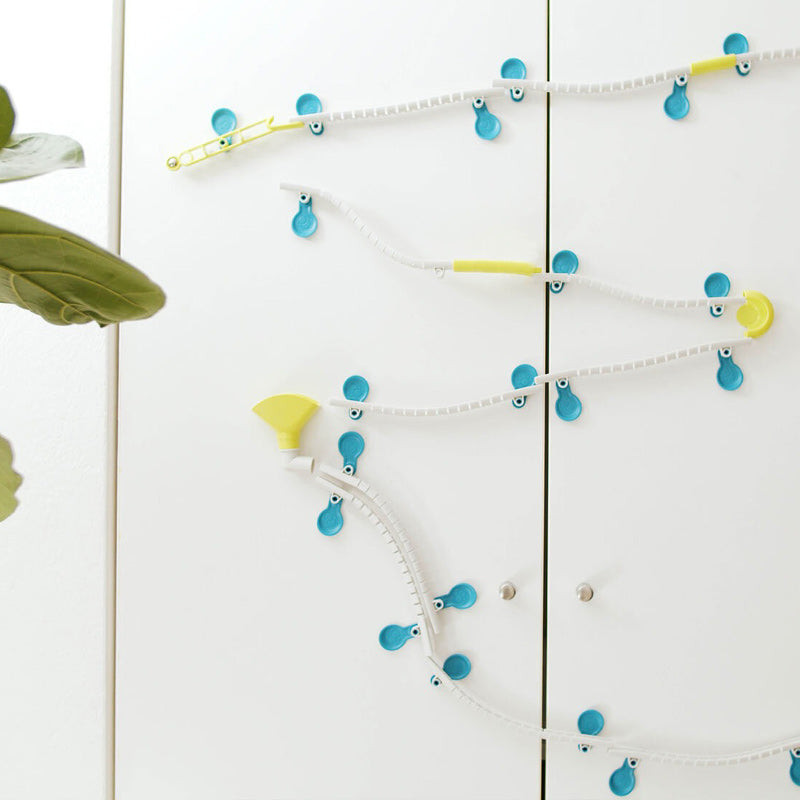 The Gecko Run Starter Set transforms any room into an exciting playing field! Using residue-free nano adhesive pads, the flexible strips can be individually attached to vertical, smooth surfaces and adjusted with ease in a matter of seconds. Children discover firsthand the impact of gravity on their rolling ball as it gains speed. Whether navigating obstacles, gliding across doors, windows, glass panes, tiles, or shelves, the KOSMOS ball track allows for unprecedented flexibility in construction.