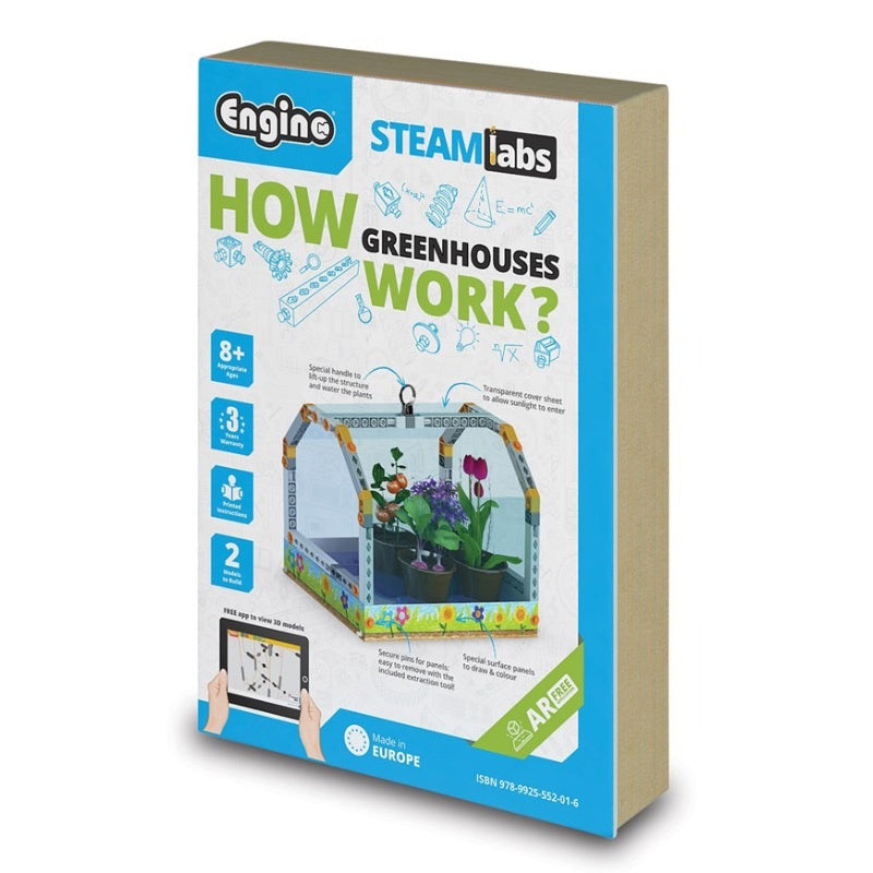 When they're done experimenting, kids can take off their hard hats and pick up their coloured pencils and decorate their very own snap-on skins! Plus, young learners will get a coloured booklet with: a micro-history of agriculture full of fun facts hands-on STEM experiments with their own corn and bean seeds the easy-to-master theory behind photosynthesis and greenhouses a quiz to test their understanding of key STEM concepts easy-to-follow building instructions printable skins to practice their design skills.