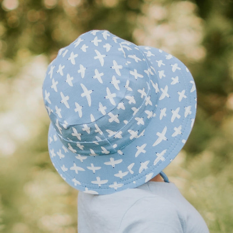 The Bedhead Classic Bucket hat is a UPF50+ kids sun hat featuring the unique 'anti-flop' technology ensuring brims won't flop in front of their eyes!