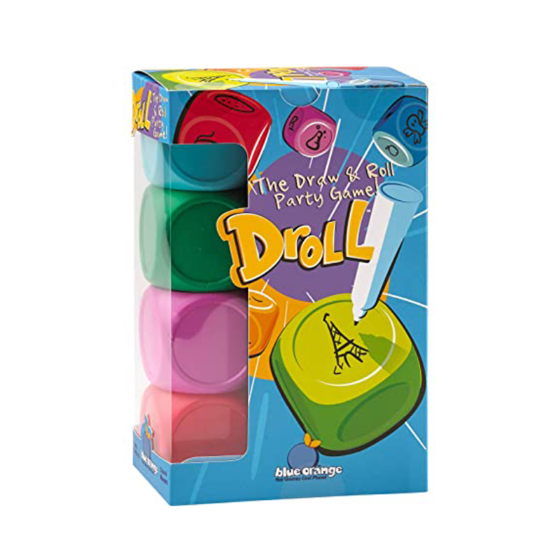 Time to break out the dice and get this party rolling! Droll is the hilarious dice-drawing party game where players race to draw images related to a secret word on each side of their giant dice. When everyone is done drawing, everyone rolls their dice and tries to guess the other players’ secret words!