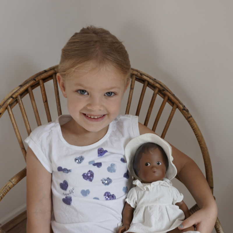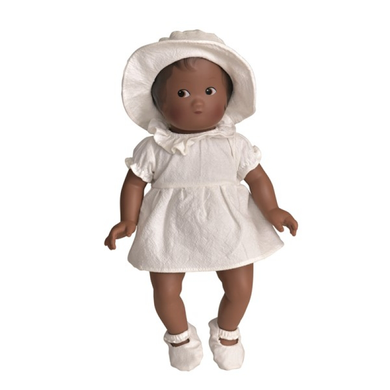 The lovely doll Amalia looks as if she just stepped out of a fairy tale! With her sweet vintage look, she is just waiting for a warm hug. The cotton clothes are easy to dress and undress. That’s a relief, because she loves to take a bath.
