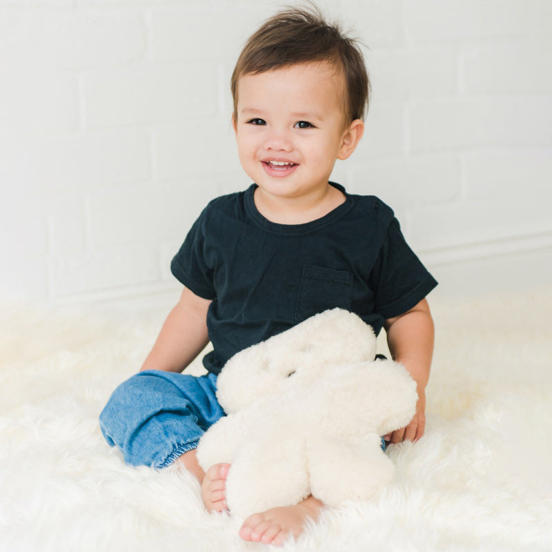 The soothing properties of the 100% Australian sheepskin bears make FLATOUTbear Milk the perfect natural baby comforter and sleep companion for babies and children.