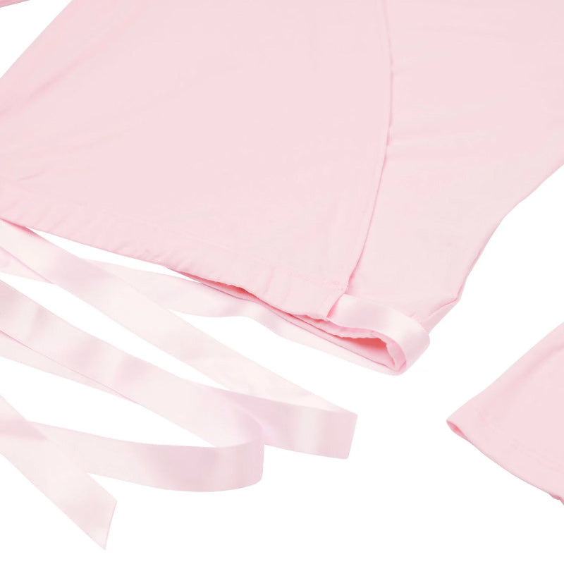The ballet crossover features a gorgeous satin ribbon that crosses over the body and ties at the back in a super sweet bow. With long sleeves and a stretch jersey construction, this classic ballet accessory is the perfect addition to your little dancer's ballet wardrobe.