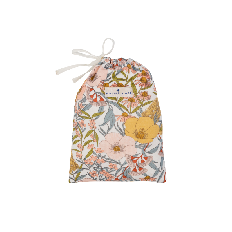 Designed exclusively for Goldie + Ace, this hand painted vintage floral print bedding is designed to be treasured. Made from soft cotton lightweight stretch jersey. Fully elasticised fitted sheet.