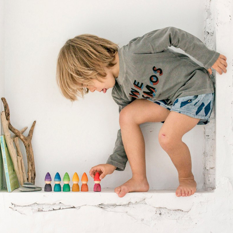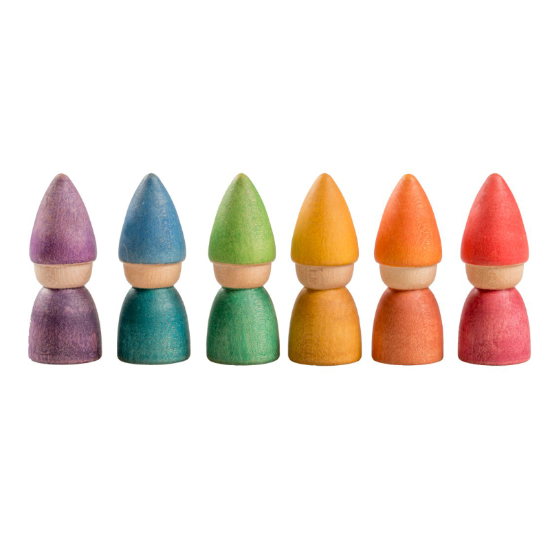6 Rainbow Nin® Tomten 70 mm hight. The 6 Tomten allow creating a creative playing possibility where their characters can be transformed according to the imagination of each boy or girl dreaming. imaginary worlds.