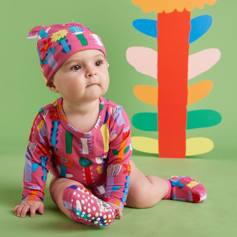 Cosy as a bear! Lock in body warmth from the top down with this super soft and snuggly cotton jersey baby hat.
